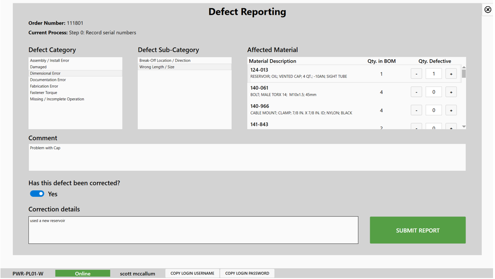 Document defects, deviations, and rework activities with full traceability to parts, equipment, operators, and processes. Structured workflows support root cause analysis and corrective action implementation.