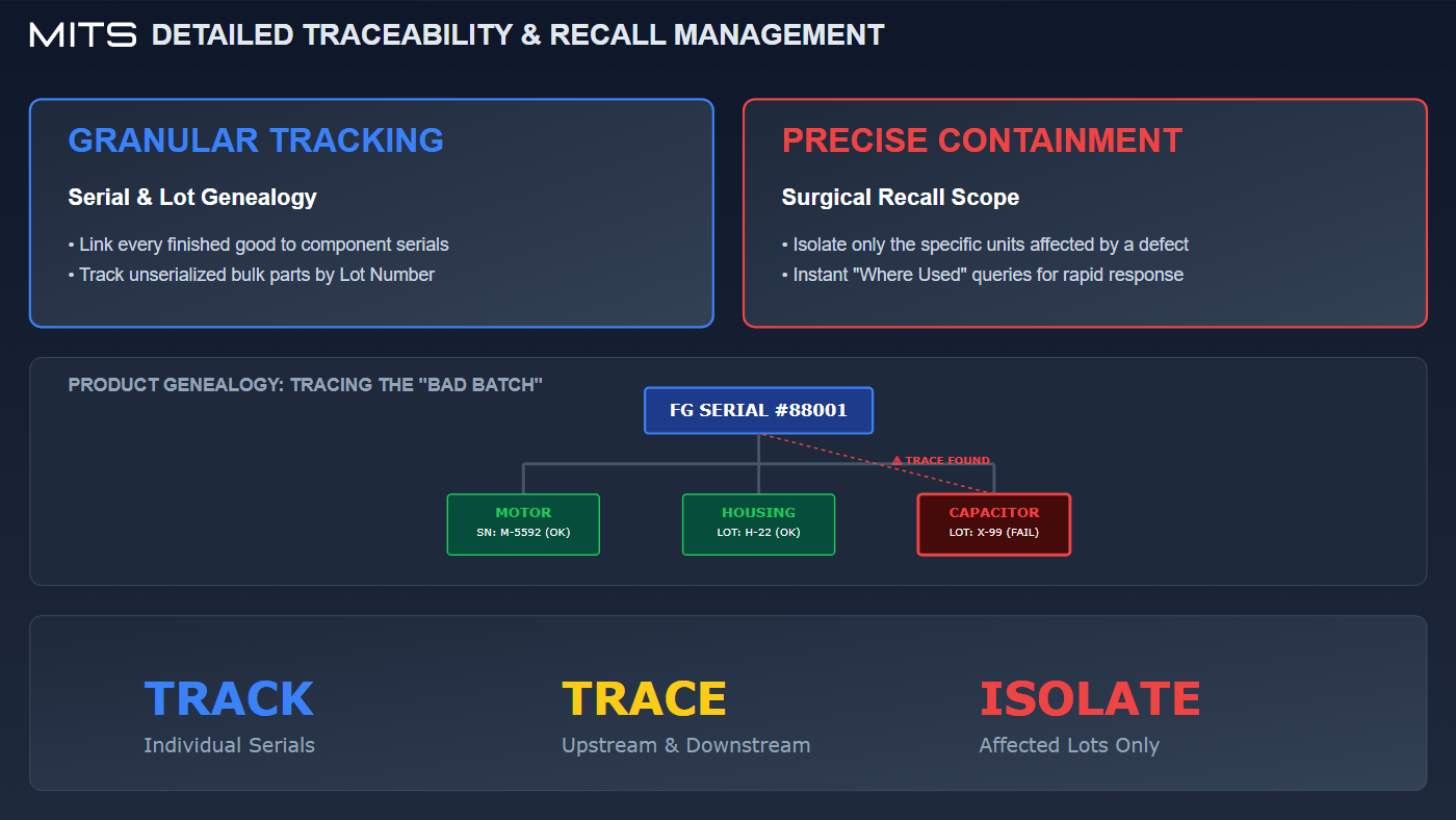 Disconnected quality systems and manual checks create blind spots that allow defects to escape. MITS integrates quality management directly into production execution, enabling earlier detection, faster response, and more consistent outcomes. The result is improved product quality, reduced scrap and rework, and greater confidence in your manufacturing processes.